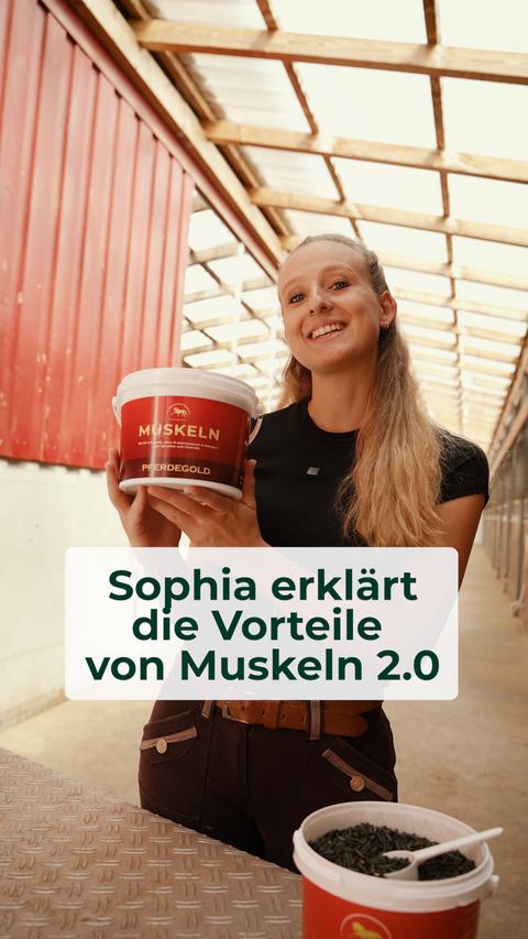 Pferdegold® Muscles is a specially developed supplementary feed designed to support muscle development in horses. Hand-selected, recommended by veterinarians, and completely doping-free – that's our promise to you: to promote muscle growth in horses with the right nutrients. It's suitable not only for sport horses, but also for young horses and seniors. The quality and well-being of your horse are our top priority.