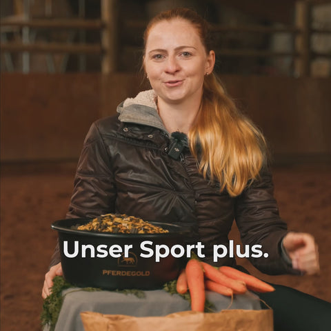 Unser Goldmüsli Sport Plus ist frei von Melasse, reich an natürlichen Zutaten und überzeugt durch einen hohen Fasergehalt. Es ist nicht mineralisiert und lässt sich ideal mit unseren Ergänzungsfuttermitteln kombinieren. Dieses Müsli unterstützt gezielt die Leistungsfähigkeit, stärkt Muskulatur und Ausdauer und liefert die notwendige Energie für sportliche Aktivitäten. Dank seines hohen Proteingehalts eignet es sich hervorragend für leistungsorientierte Pferde.