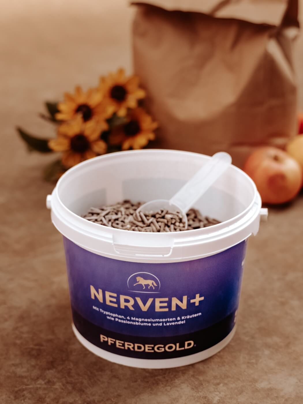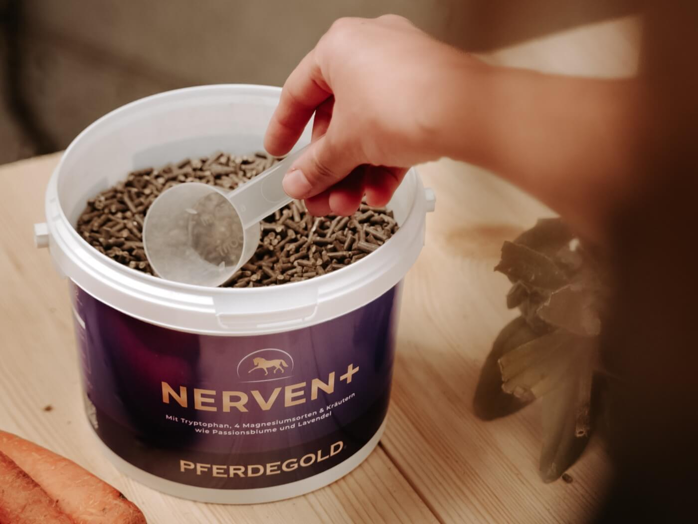 Pferdegold Nerven 2.0 ist ein Ergänzungsfutter mit wichtigen Mineralien und Vitaminen. Bei besonderen Verhaltensauffälligkeiten solltest du aber auf jeden Fall mit deiner Tierärztin oder deinem Tierarzt sprechen, ob eine Ergänzung sinnvoll ist.